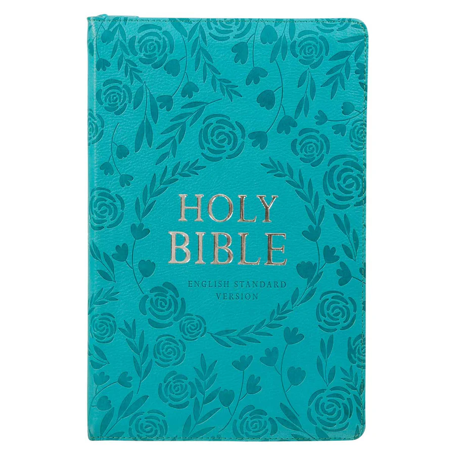 ESV Turquoise Faux Leather Standard Bible Thumb Indexed With Zip