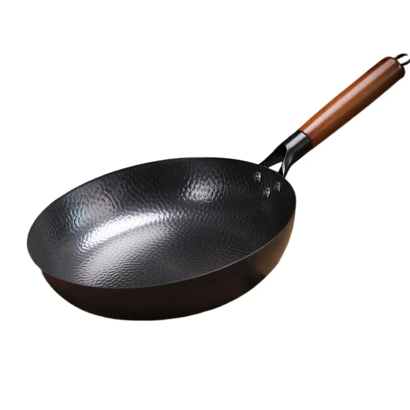 Konco Pure Iron wok cast iron pan Non-coated Pot General use for Gas and Induction Cooker 32cm Chinese Wok Cookware Pan